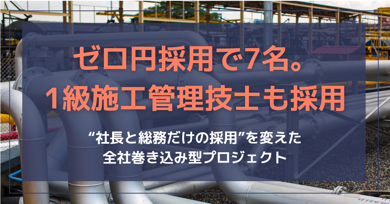 費用ゼロで1級管工事施工管理技士2名を含む7名の採用に成功|採用活動を「全社ごと」へ変革